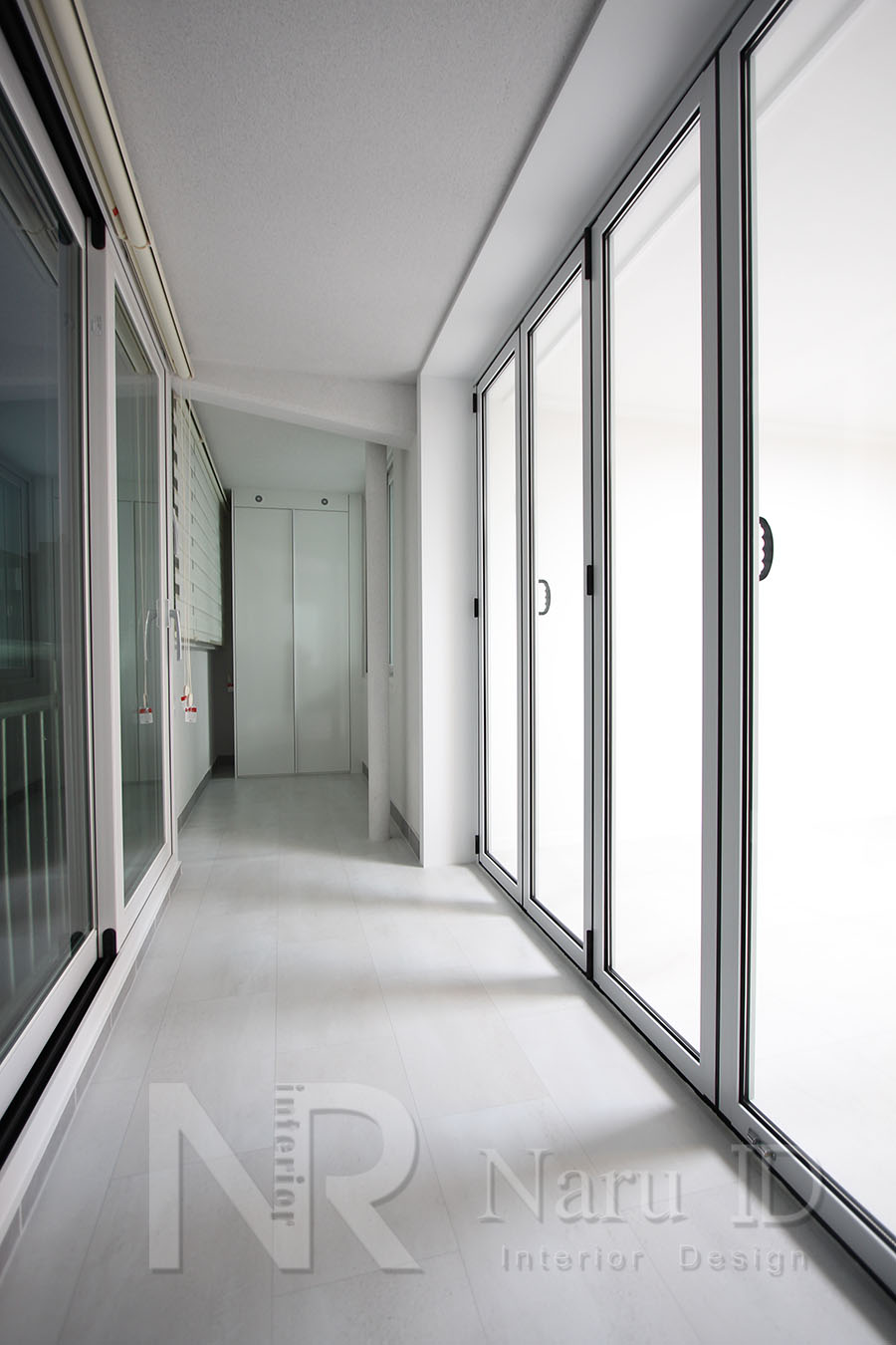 거실의 폴딩도어도 깔끔한 화이트색상으로
